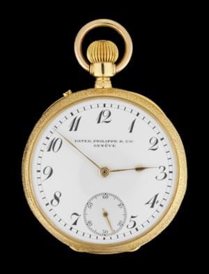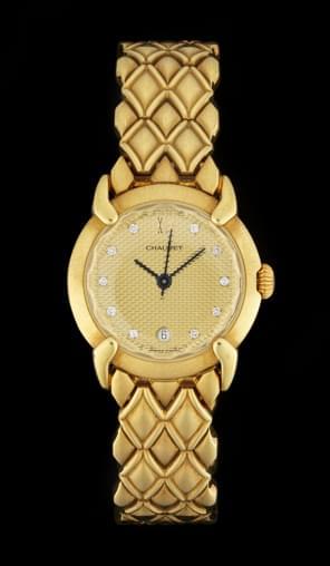 Cadran guilloché doré, aiguilles bleuies, index en diamants, dat...