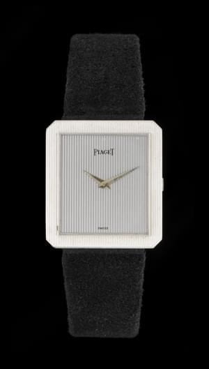 Cadran gris, aiguilles et index bâtons noirs, or gris 750, L env...