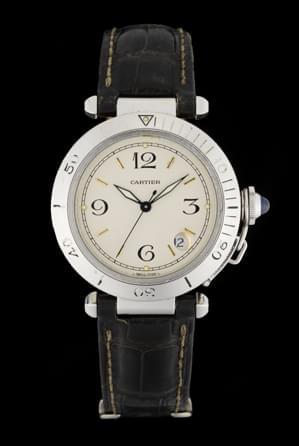 Cadran gris, aiguilles bleuies, chiffres arabes noirs, date à gu...