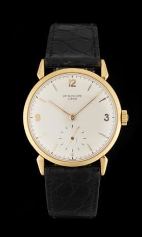 Cadran gris, aiguilles et index dorés, secondes à 6h, réf. 3435,...