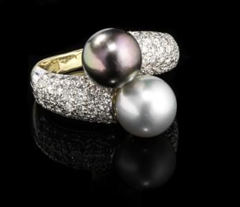 359. Adler, bague sertie d'une perle de Tahiti (D env. 13 mm)