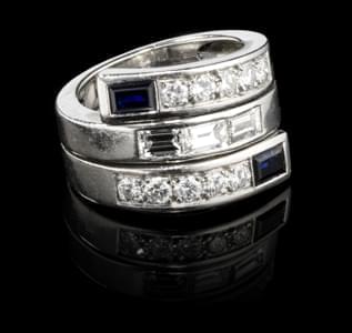 Sertis l'un d'une ligne de saphirs et l'autre d'une ligne de dia...