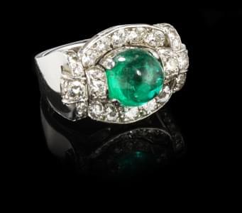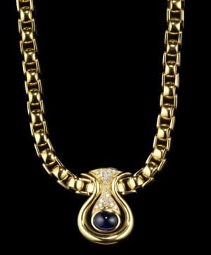 Retenant un motif serti d'un saphir taille cabochon (env. 4 ct)...