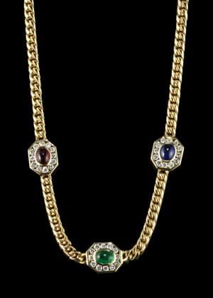 344. Carl Bücherer, sautoir à maille gourmette deux ors ponctué de mo...
