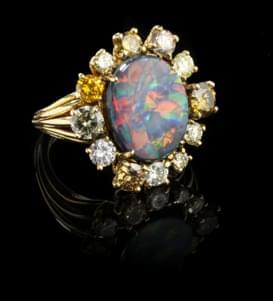 339. *Bague sertie d'une opale australienne (env. 14,1x11,2 mm) entou...