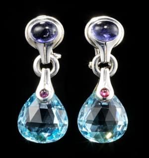 343. Antonini, paire de pendants d'oreilles retenant des topazes tail...