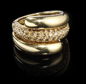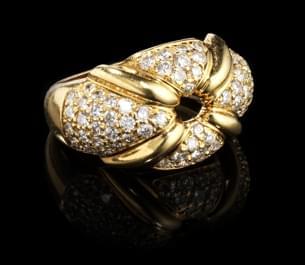 356. Chaumet, bague ajourée godronnée et pavée de diamants
