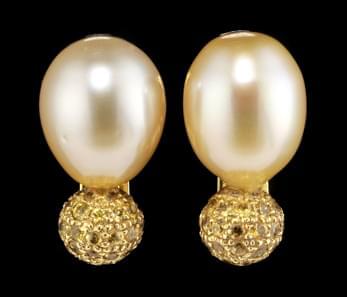 360. Adler, boucles d'oreilles serties de perles en goutte surmontant...