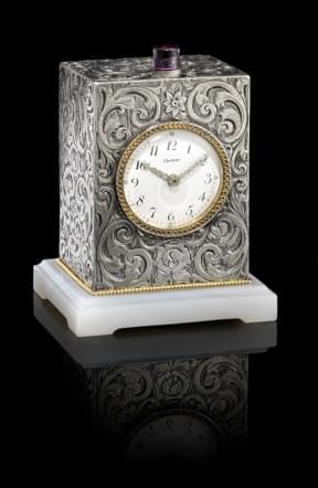 Cadran blanc, aiguilles serties probablement de diamants, chiffr...