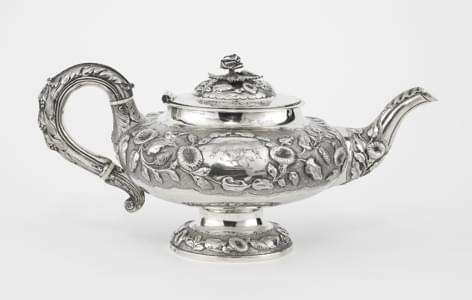 385. Théière d'époque William IV à décor de liserons et cimier de la...