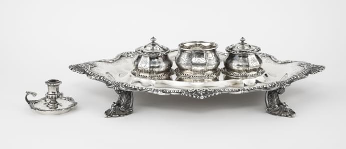 386. Encrier d'époque victorienne à anses coquille, dédicacé