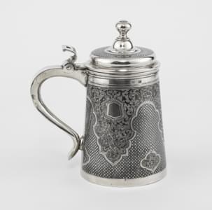 388. Chope à décor niellé de lambrequins de rinceaux sur fond de dami...