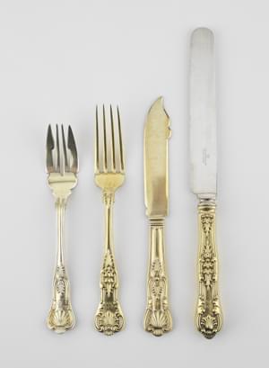 Tiffany&co, métal doré comprenant: 24 fourchettes, 24 couteaux e...