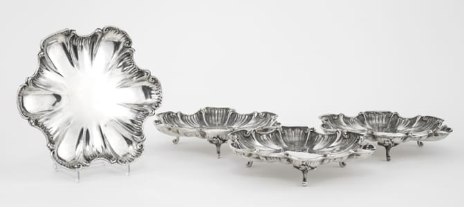 393. Suite de 4 coupes tripodes polylobées de style Rocaille