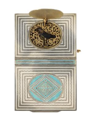 382. Carnet de bal à décor de trophée ouvrant sur le portrait miniatu...