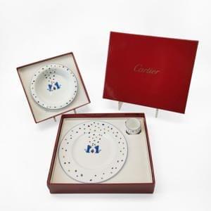 Assiette, assiette creuse et coquetierPorcelaine, à décor de pan...
