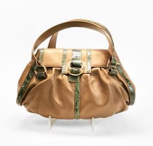 Cuir de veau lisse couleur camel et python, garnitures en métal...