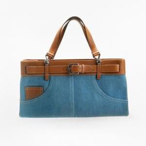 Cuir camel et denim, accastillages argentés, poches intérieures...
