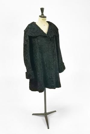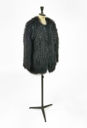 Cuir grainé noir, surpiqûres jaune et ivoire, à décor de clous e...