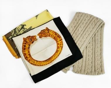 Laine et cachemire beige, L 205 cm. On joint deux foulards Carti...
