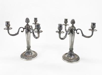 4462. Paire de candélabres à trois feux de style Louis XVI