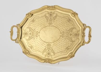 4468. Christofle, grand plateau de service gravé de coquilles et entre...