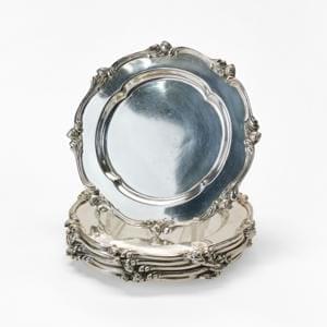 4472. Suite de six dessous de bouteille à bordure de fleurs