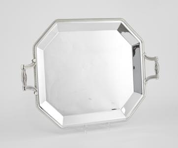 4479. Christofle, plateau de service octogonal à anses ornées de coqui...