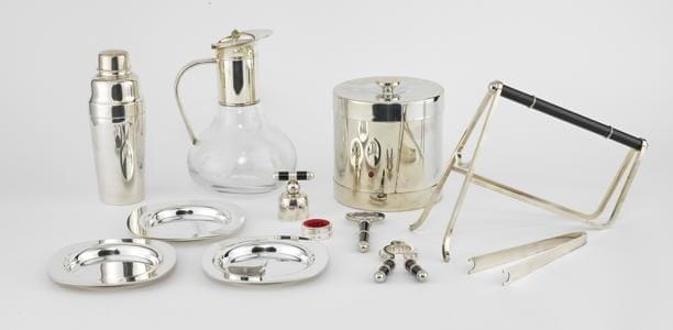 France, métal argenté et laque noire, comprenant: porte-bouteill...