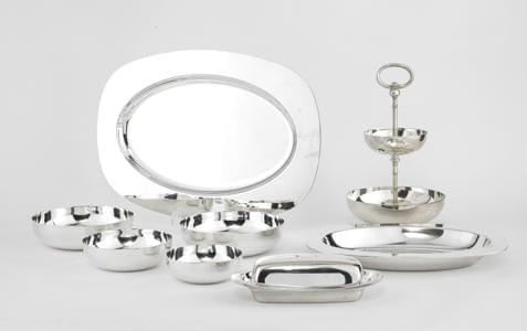 France, métal argenté, comprenant: 2 plats, 4 bols, 1 beurrier e...