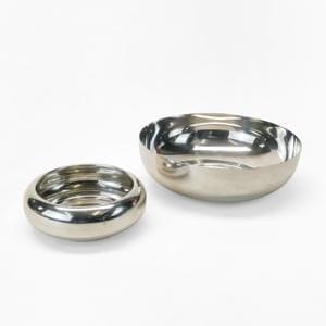 Métal argenté, D 17 cm et D 8,5 cm. On joint un dessousde-boutei...
