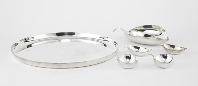 4488. Lino Sabattini (1925-2016) pour Christofle, plateau rond et 5 co...