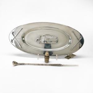 Métal argenté, comprenant: porte-bouteille et bouchon, plateau e...