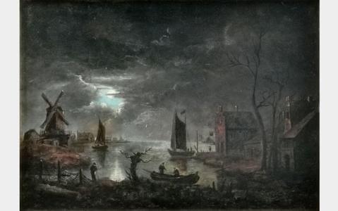 Nocturne au bord de la mer, huile sur panneau, 32x44 cm