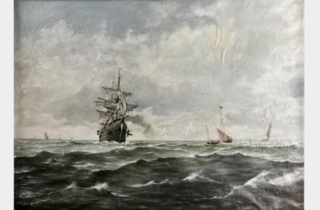 Scène maritime, huile sur toile, signée, 67x92 cm