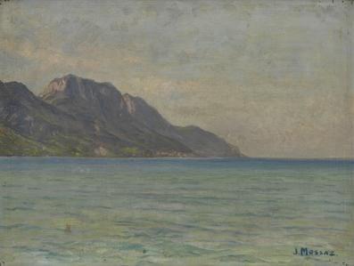 Vue du lac Léman, huile sur toile, signée Mossaz, 35x45 cm
