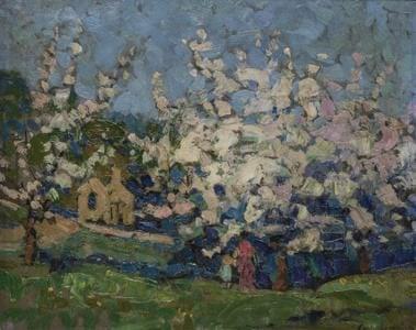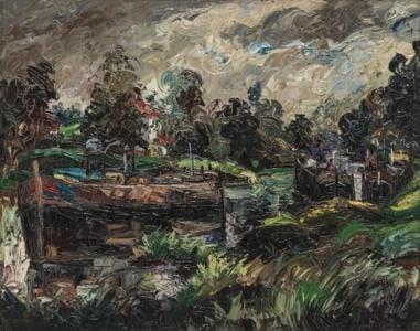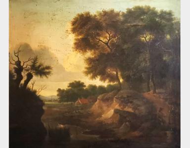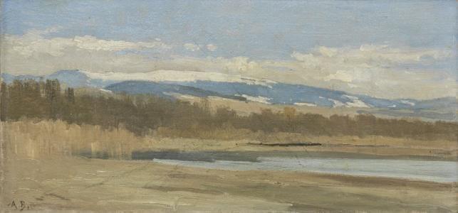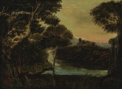 Paysage, huile sur toile, 23x31 cm. Provenance: château de Russi...