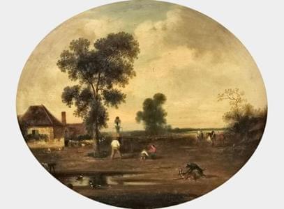 Scène bucolique, huile sur panneau, 24x45 cm