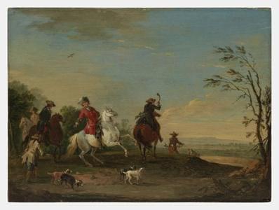 Cavalcade dans la forêt, huile sur toile, monogrammée A.de M. et...