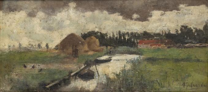 Canal dans la campagne hollandaise, huile sur toile, signée, 17x...