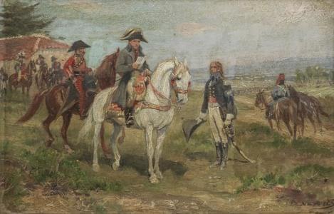 Napoléon sur le champ de bataille, huile sur toile, signature il...