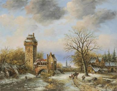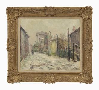 Rue en hiver, huile sur toile, signée et datée, 48x55 cm