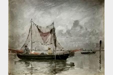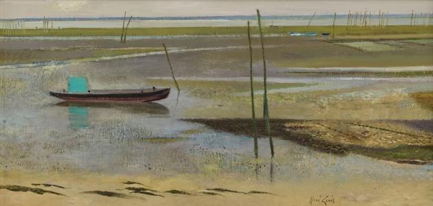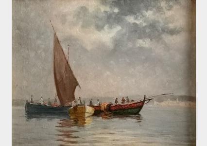 Pêcheurs, huile sur toile marouflée sur carton, 32x39 cm