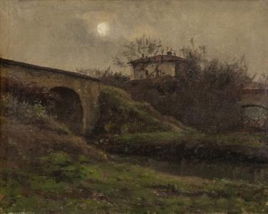 Paysage avec pont, huile sur toile, signée, 26x20 cm