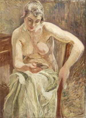 Jeune femme au miroir, huile sur toile, 80x60 cm