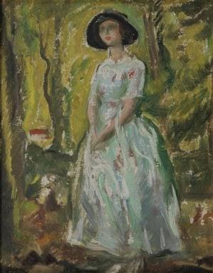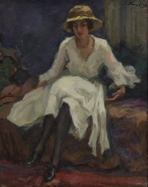 Elégante au chapeau, huile sur toile, signée, 50x40 cm