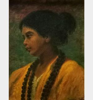 Portrait d'une femme indienne, huile sur pavatex, signée, 32x24...