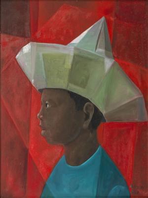 Garçon au chapeau, acrylique sur toile, signée et datée LXXVI, 8...