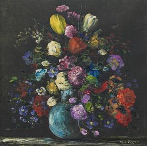 Fleurs, huile sur toile, signée, 35x35 cm