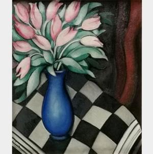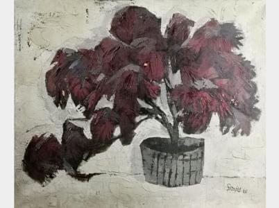 Plante dans un pot, huile sur toile, signée et datée 62, 54x65 c...